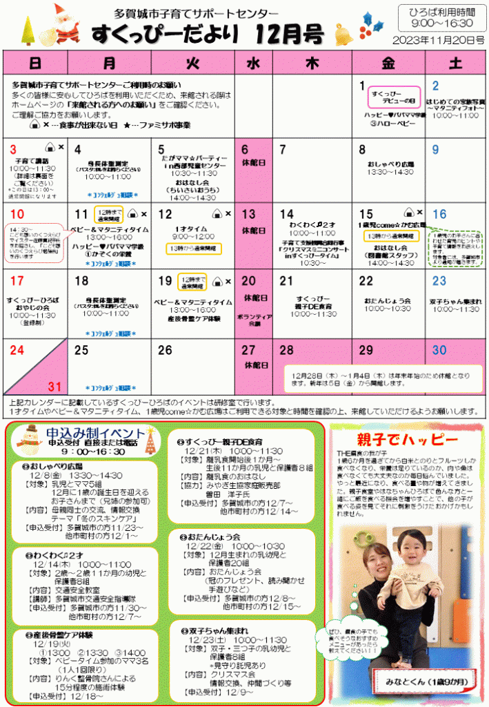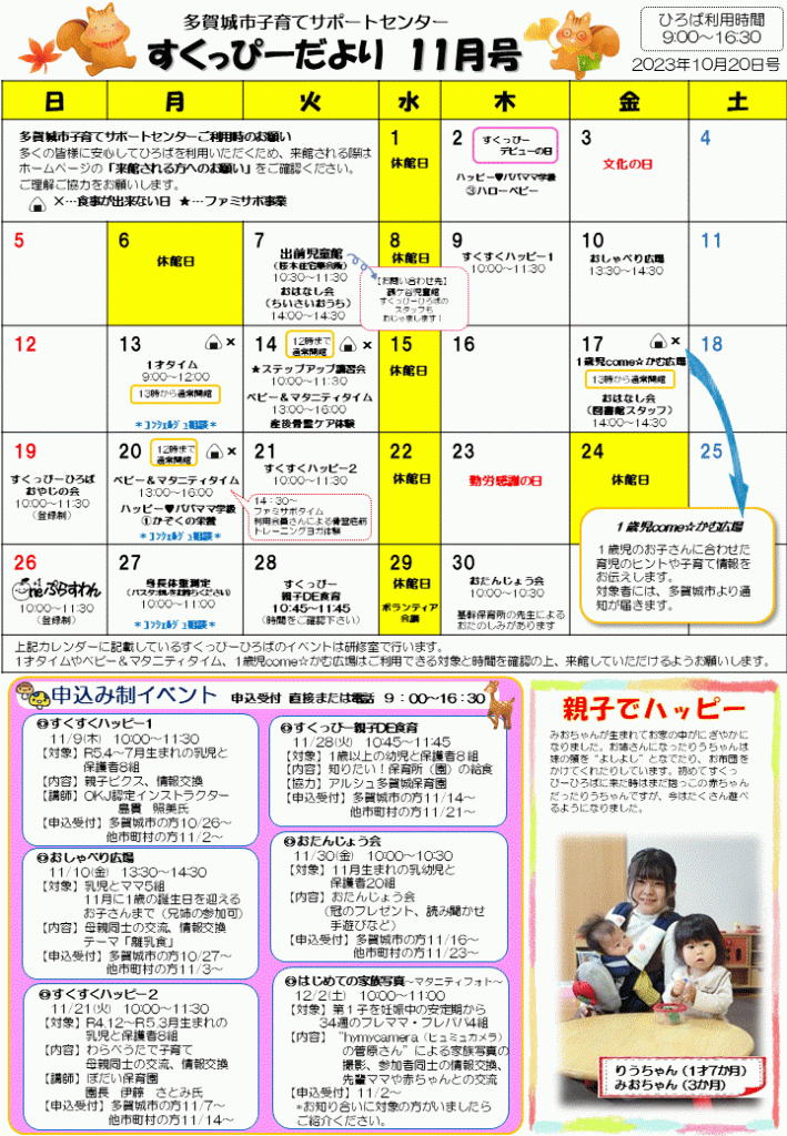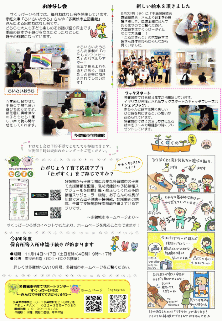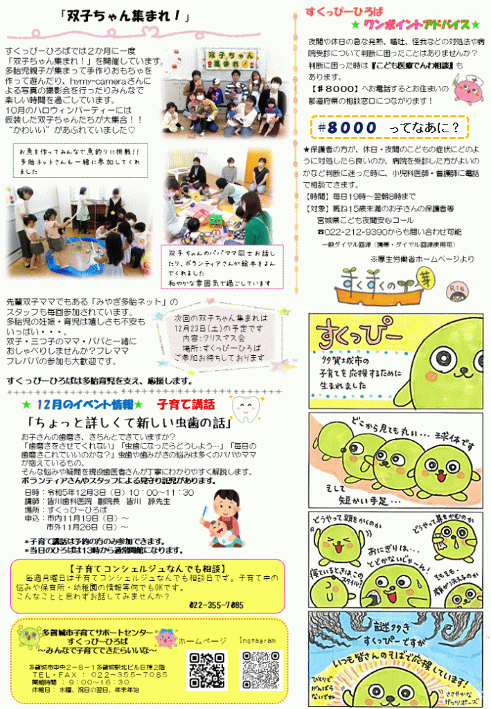 すくっぴーだよりは、多賀城市役所、多賀城市内保育園・保育所、多賀城市内小児科等に設置しています。