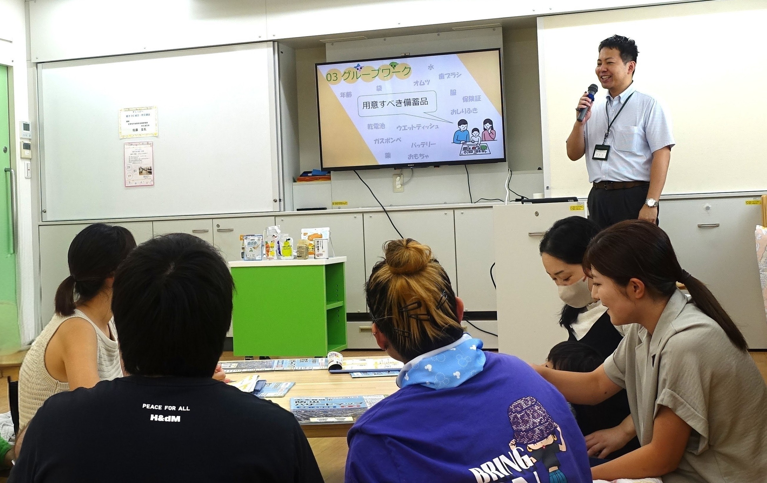 すくっぴーひろばでは、多賀城市危機管理課 防災・減災係の方を講師にお迎えし、災害時の備えについて学びました。