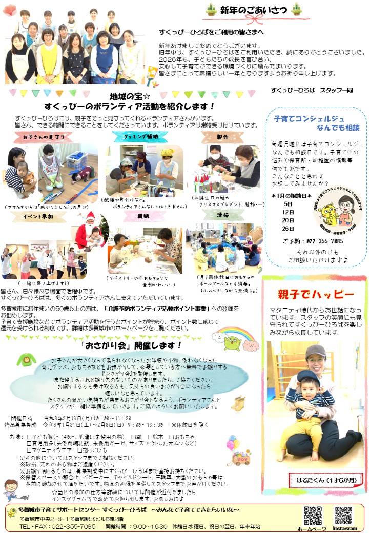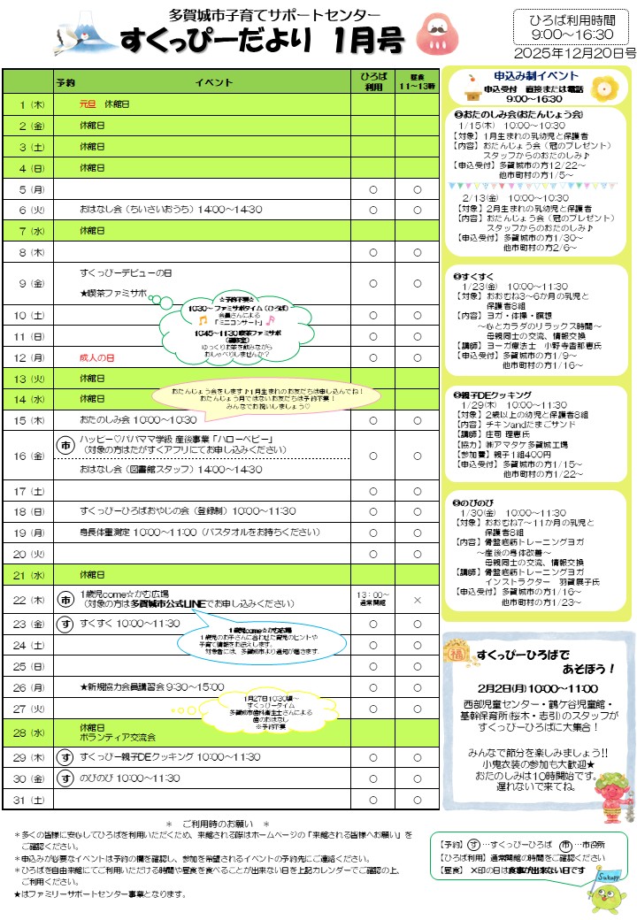 すくっぴーだよりは、多賀城市役所、多賀城市内保育園・保育所、多賀城市内小児科等に設置しています