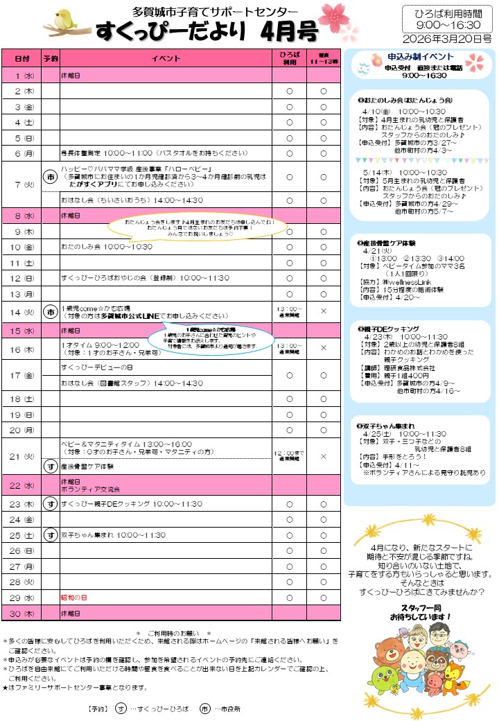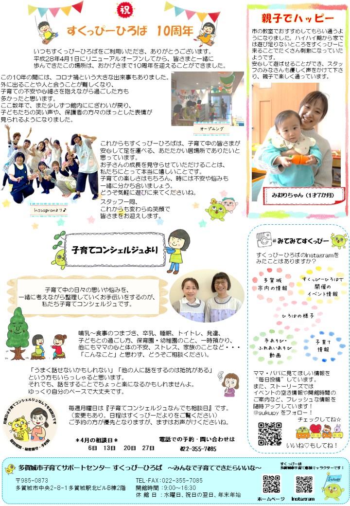 すくっぴーだよりは、多賀城市役所、多賀城市内保育園・保育所、多賀城市内小児科等に設置しています